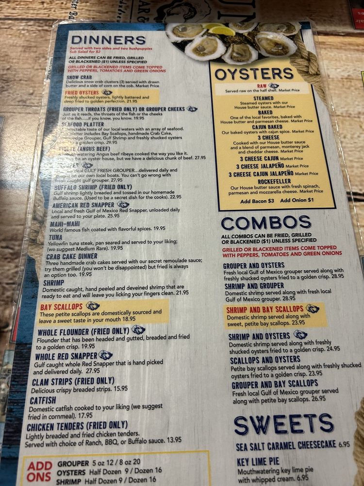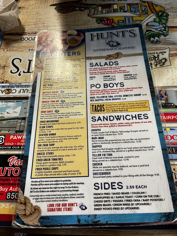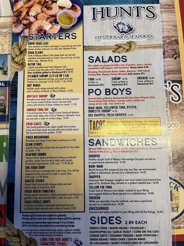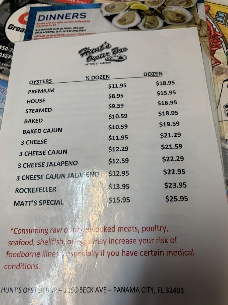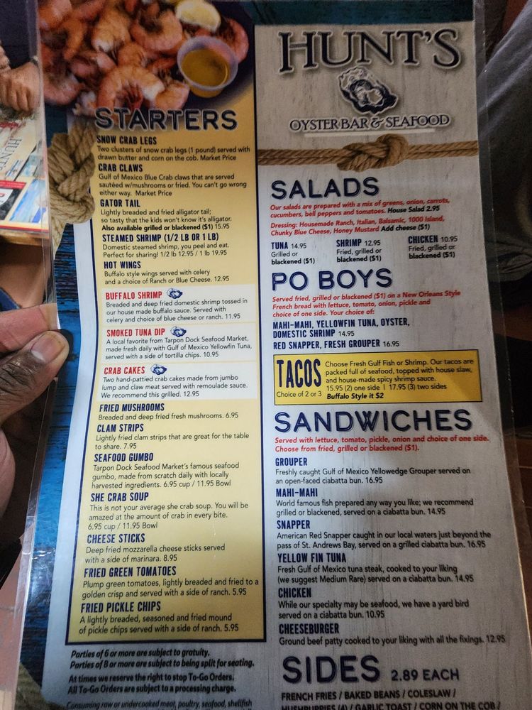 Hunt's Oyster Bar & Seafood Restaurant in Panama City, FL offers a vibrant and casual dining experience with a focus on fresh seafood and sandwiches. The menu features a variety of appetizers like Cajun Steamed Shrimp, Fried Crab Cakes, and Snow Crab Legs. Their sandwich selection includes options like Oyster Po'boy, Shrimp Po'boy, and Grilled Grouper. Customers rave about the quality and taste of the dishes, mentioning favorites like the house oysters, Grilled Grouper, and Fried Gator. The atmosphere is described as lively and welcoming, perfect for enjoying a meal with friends and family. With prompt and friendly service, Hunt's Oyster Bar & Seafood Restaurant is a must-visit for seafood enthusiasts looking for a relaxed dining experience.